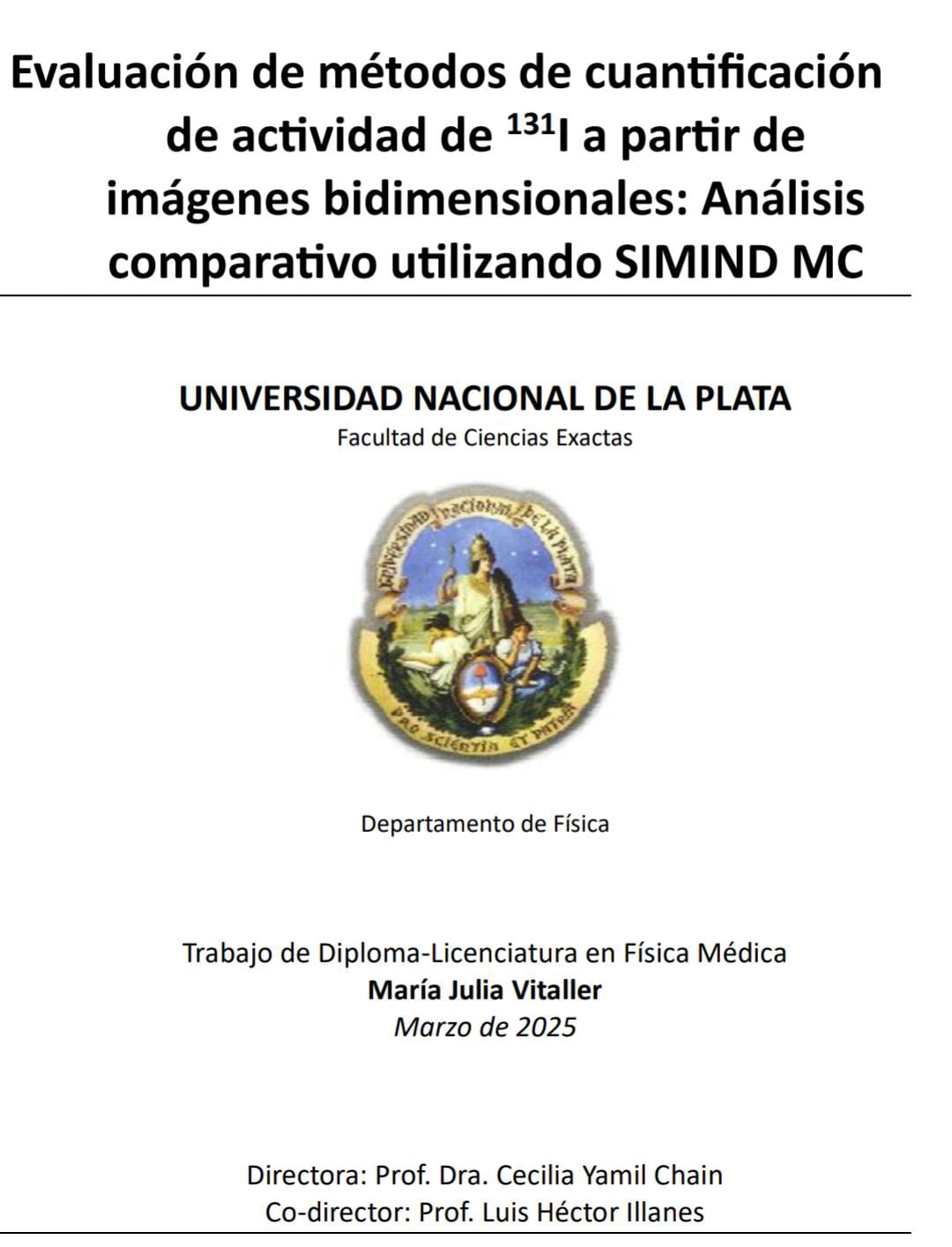 desde la División de Física Médica queremos hacer llegar nuestras más sinceras felicitaciones a la Lic. en Física Médica María Julia Vitaller quién fue galardonada en la última Reunión conjunta AFA-SUF 2025 con el premio Másperi 2025 por su trabajo "Evaluación de métodos de cuantificación de actividad de 131I a partir de imágenes bidimensionales: Análisis comparativo utilizando SIMIND MC" realizado en el Departamento de Física de la Facultad de Ciencias Exactas de la Universidad Nacional de La Plata.